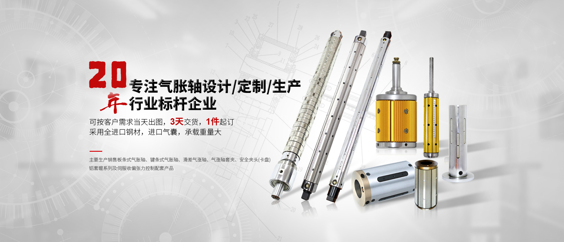 (氣漲軸)漲緊軸生產(chǎn)廠家生產(chǎn)的氣脹軸氣漲軸主要由前套、后套、氣缸、內(nèi)管、氣囊、凸形鍵盤等部分組成,氣漲軸膨脹套由表面氧化...